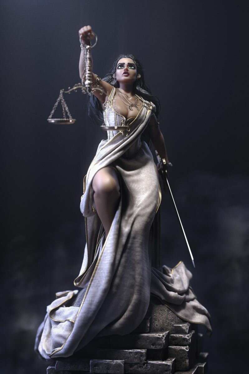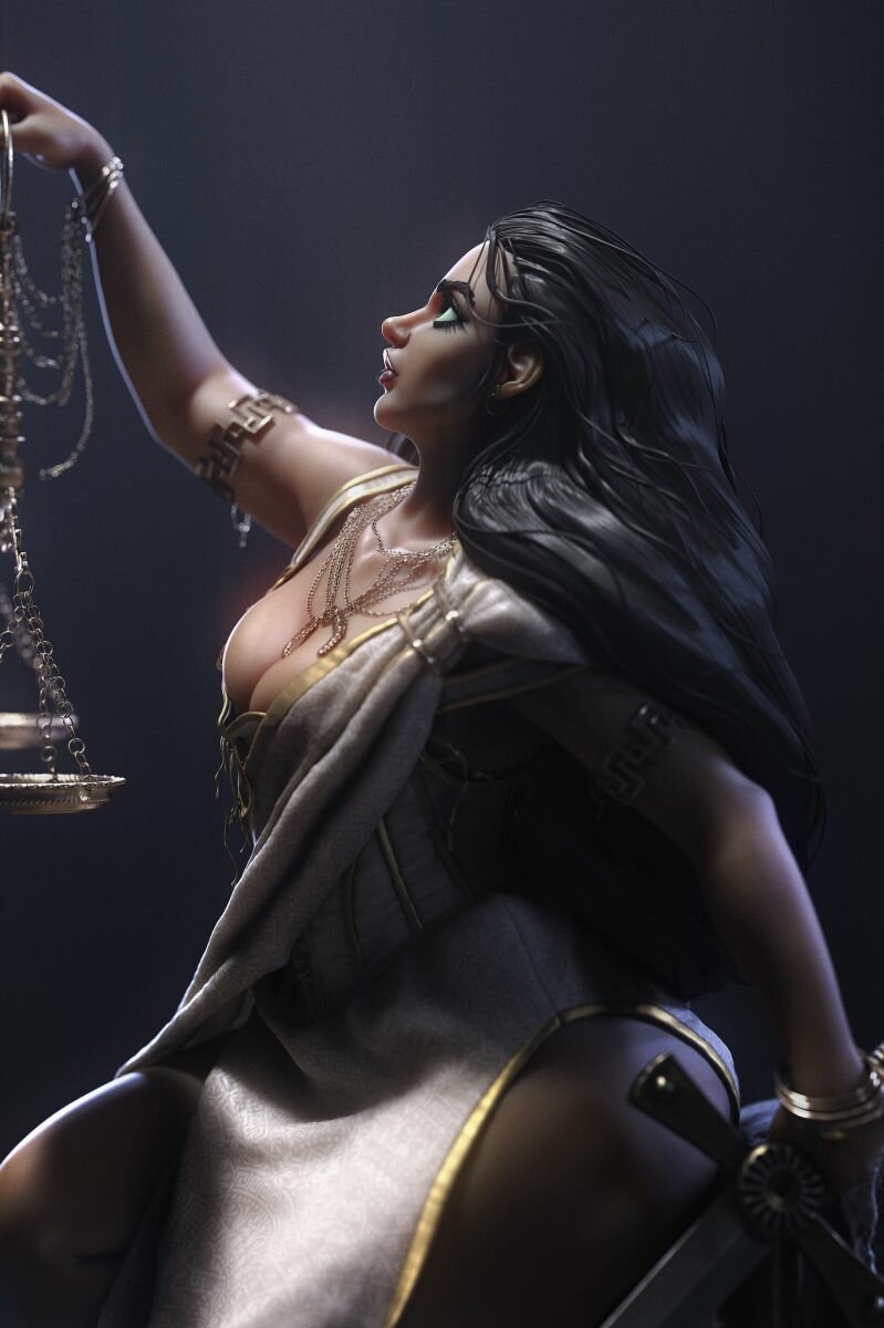 Второй красавицей, которую воссоздал художник в новом образе, стала Фемида — богиня правосудия и мудрости в греческой мифологии. Ее легко узнать по весам, использующимся для взвешивания поступков умершего человека, и мечу. А вот лицо покровительницы Doc Zenith не стал прикрывать повязкой, как предписывает первоисточник. Вместо этого он изобразил внешность, подчеркивающую пышные формы Фемиды.
